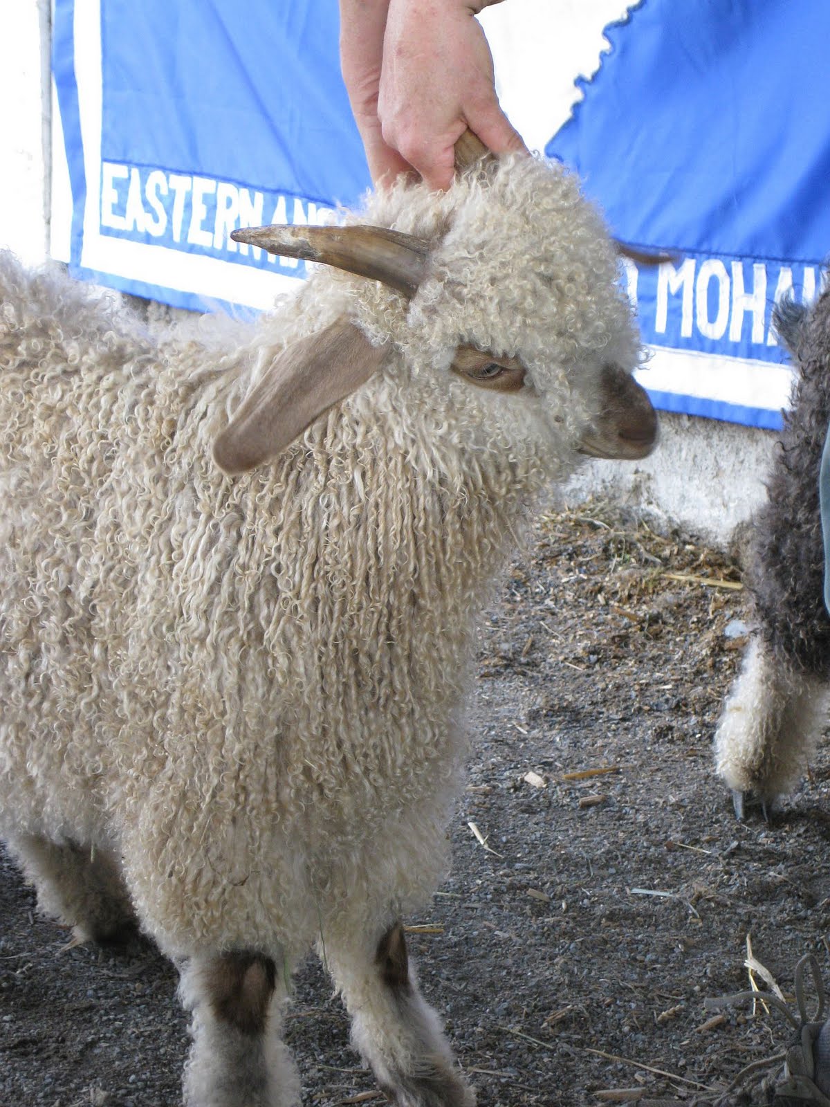 I would hate to be a judge. There were so many fine animals with absolutely lovely fleeces. The judge (in the white hat) checked the wool on the entire animal - the back, sides, and rear. He checked for both the quality of the wool as well as the density of it. On a few occasions, he'd have to check and recheck to determine the final rankings of the top goats. It was fascinating to watch.